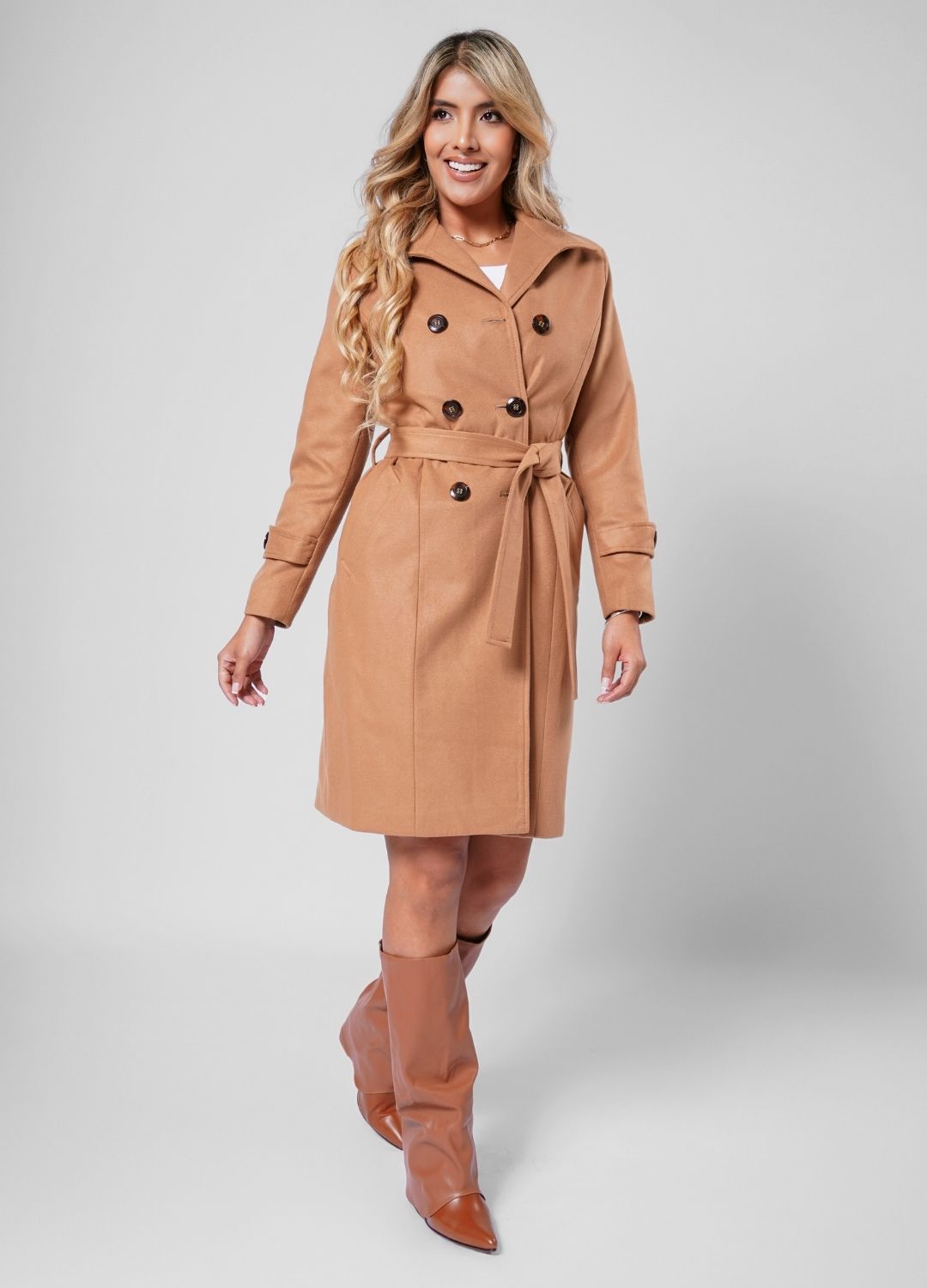 Abrigo en paño de corte estructurado con bolsillos laterales y cinturón ajustable. Incluye bolsillo interno para mayor funcionalidad. Diseño versátil, ideal para climas fríos y ocasiones casuales o formales.