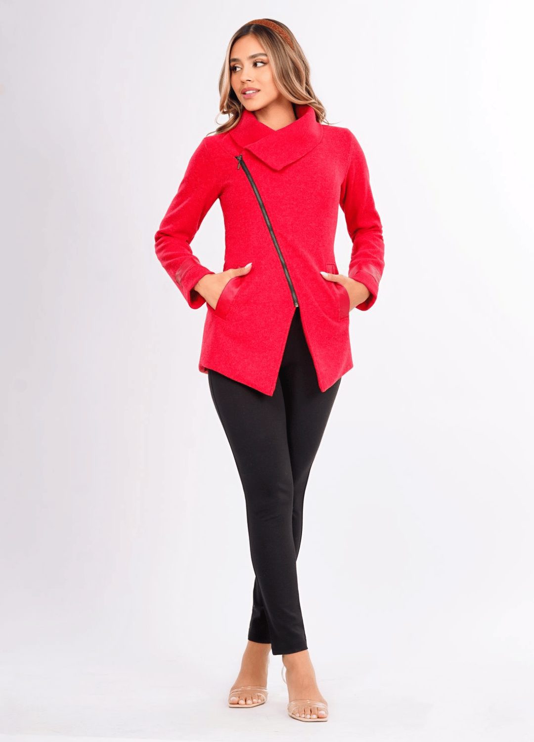 Este abrigo de paño con diseño asimétrico y cremallera es la pieza perfecta para para tus looks. Forrado en su interior, cuenta con bolsillos laterales funcionales. Una pieza esencial que combina funcionalidad y estilo atemporal.
