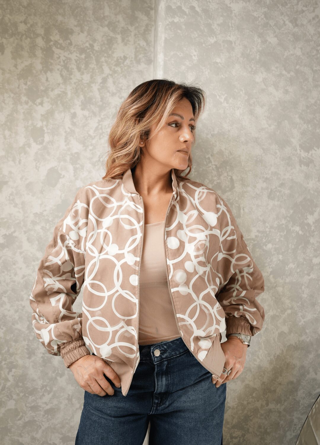Chaqueta estampada, disponible en 5 colores, cuenta con bolsillos funcionales, ajuste elástico en puños y pretina. Interior totalmente forrado.