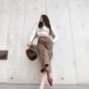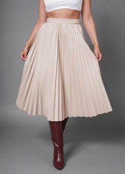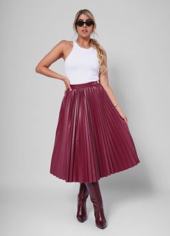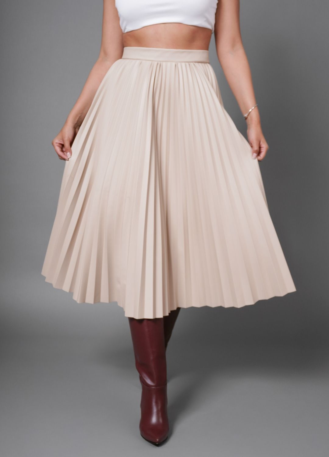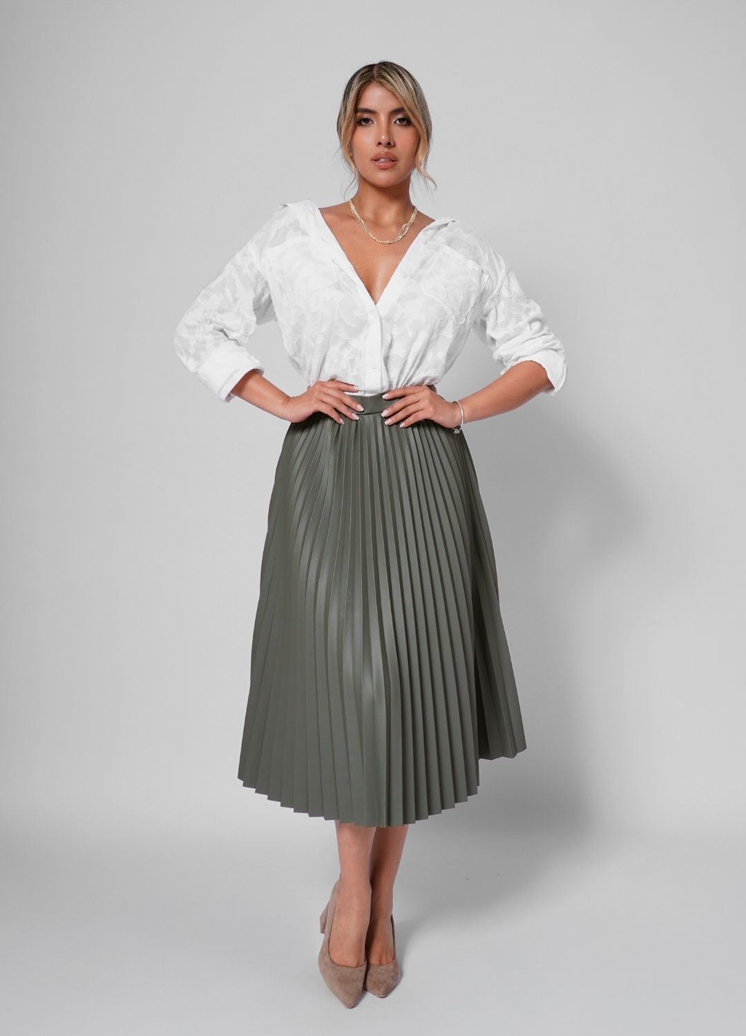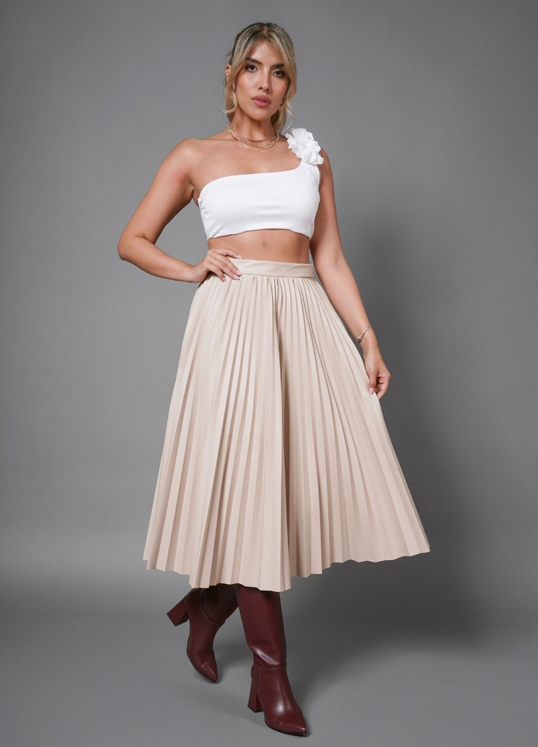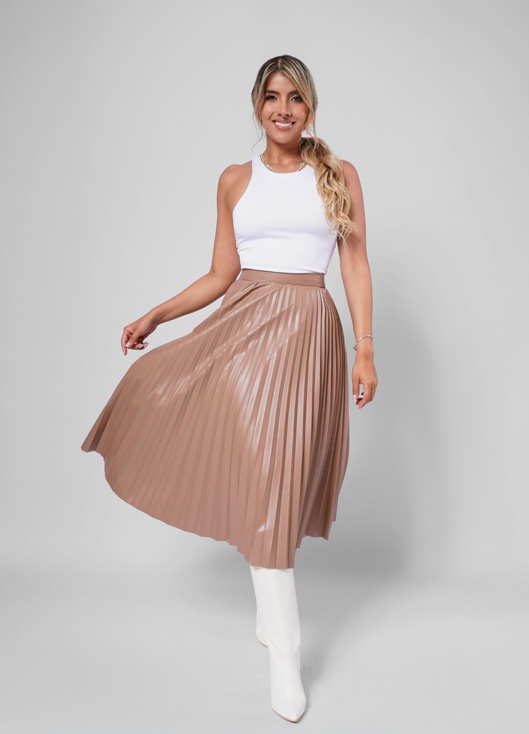 Falda plisada efecto cuero con prenses y cremallera lateral.