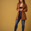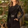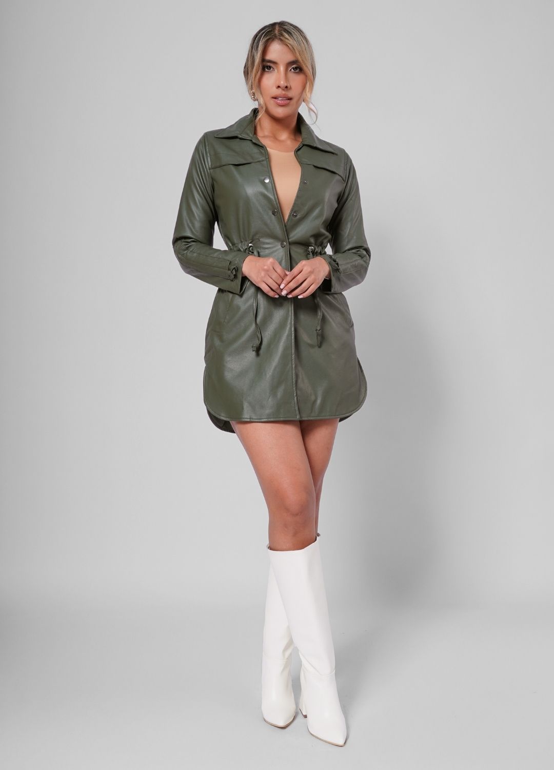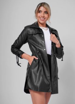 Gabán tipo Fiyat en cuero sintético textil, con cordones de ajuste en cintura y mangas para una silueta definida. Detalles de broches y forro al tono para un acabado sofisticado