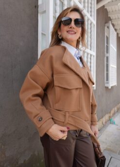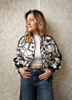 Chaqueta de silueta oversize confeccionada en corduroy estampado. Incluye forro interior liviano, botones forrados en la misma tela, bolsillos laterales funcionales y cuello tipo solapa.
